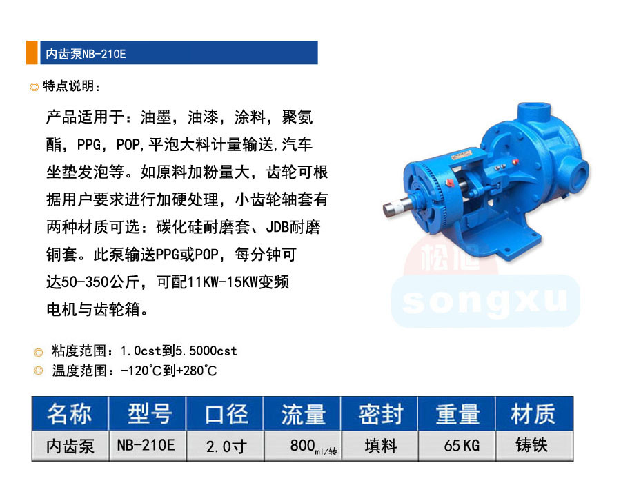 產(chǎn)品適用于:油墨,油漆,涂料,樹脂,聚氨酯平泡大料計量輸送,PPG,POP,冰箱保溫隔層發(fā)泡,汽車坐墊發(fā)泡等。如原料加粉量大,齒輪可根據(jù)用戶要求進行加硬處理,小齒輪軸套有兩種材質可選:碳化硅耐磨套、JDB耐磨銅套。此泵輸送PPG或POP,每分鐘可達50-250公斤。根據(jù)原料的粘度可選配7.5KW、11KW、15KW變頻機與齒輪箱。另外泵頭與主軸已完全鎖住,使用時絕不會前后竄動。從而保證了流量與壓力的穩(wěn)定性。泵使用久了,齒輪平面間隙磨損了,可通過軸頭部分的大螺帽順時針向前調(diào)節(jié)平面間隙,延長齒輪泵的使用周期。